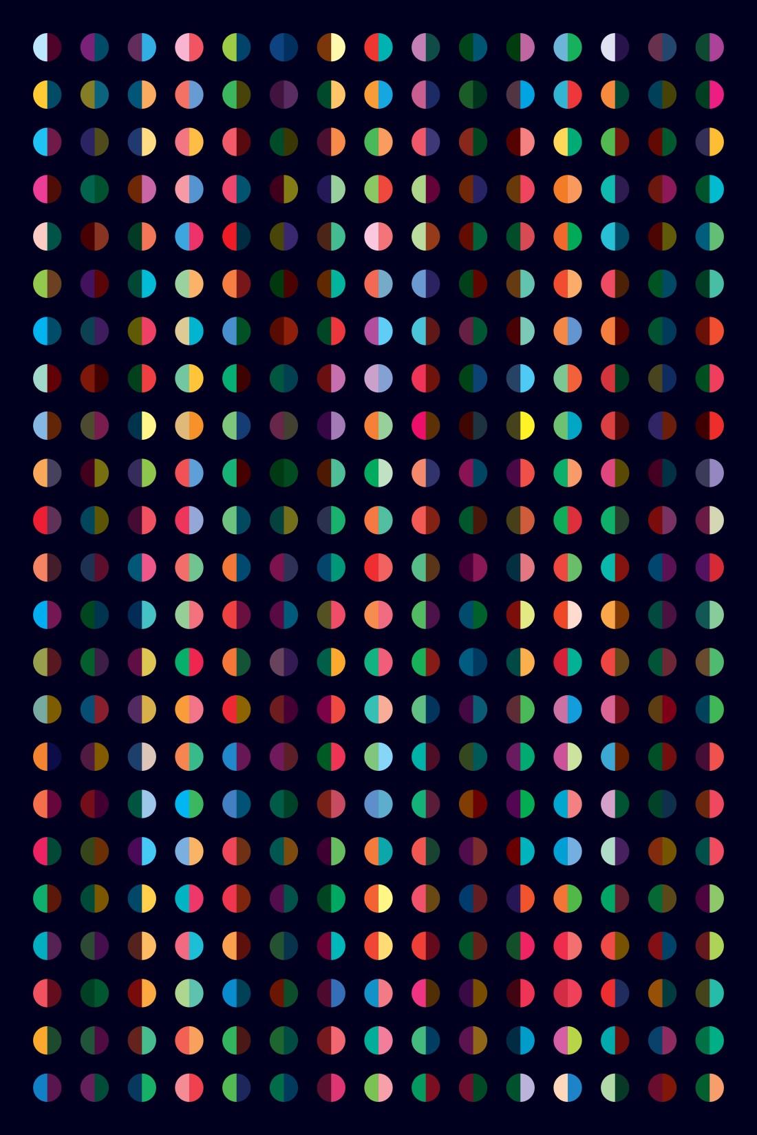 Dots #2 – Light and saturated colours combined on a dark blue background.